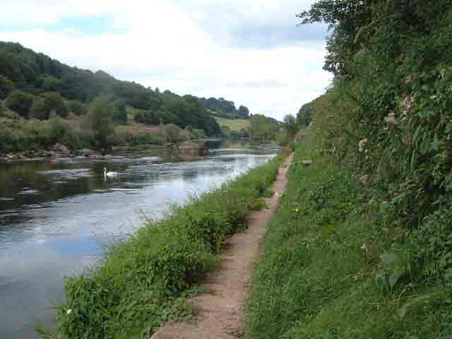 The Wye at Redbrook looking south. The old railway bridge just visible in the centre